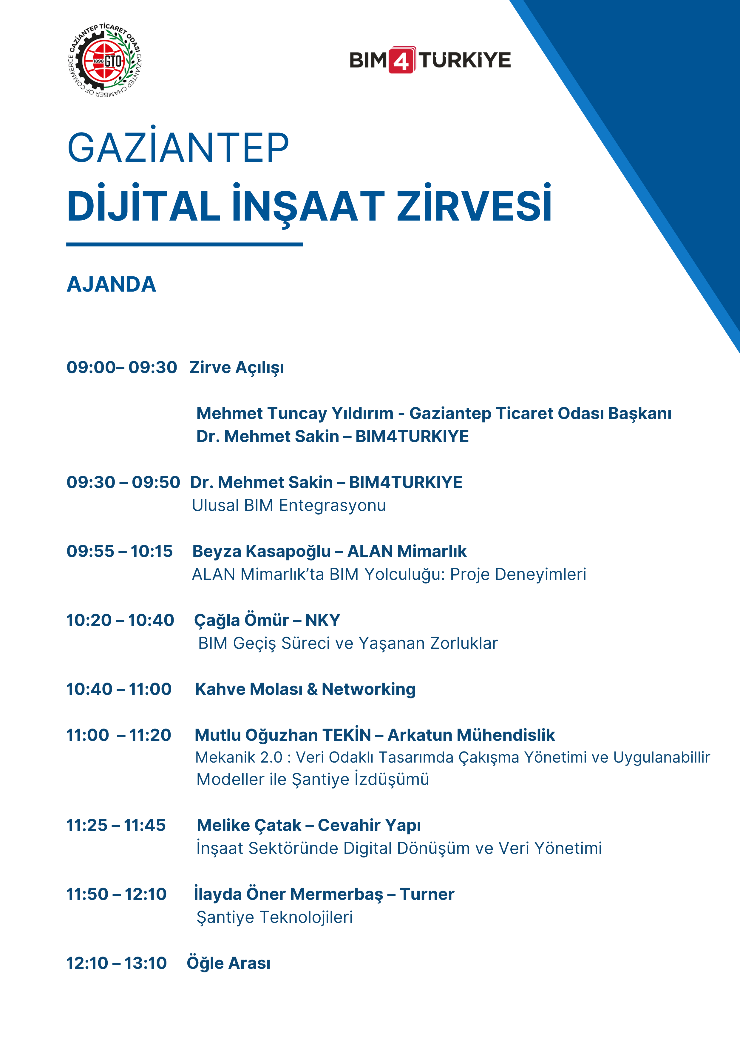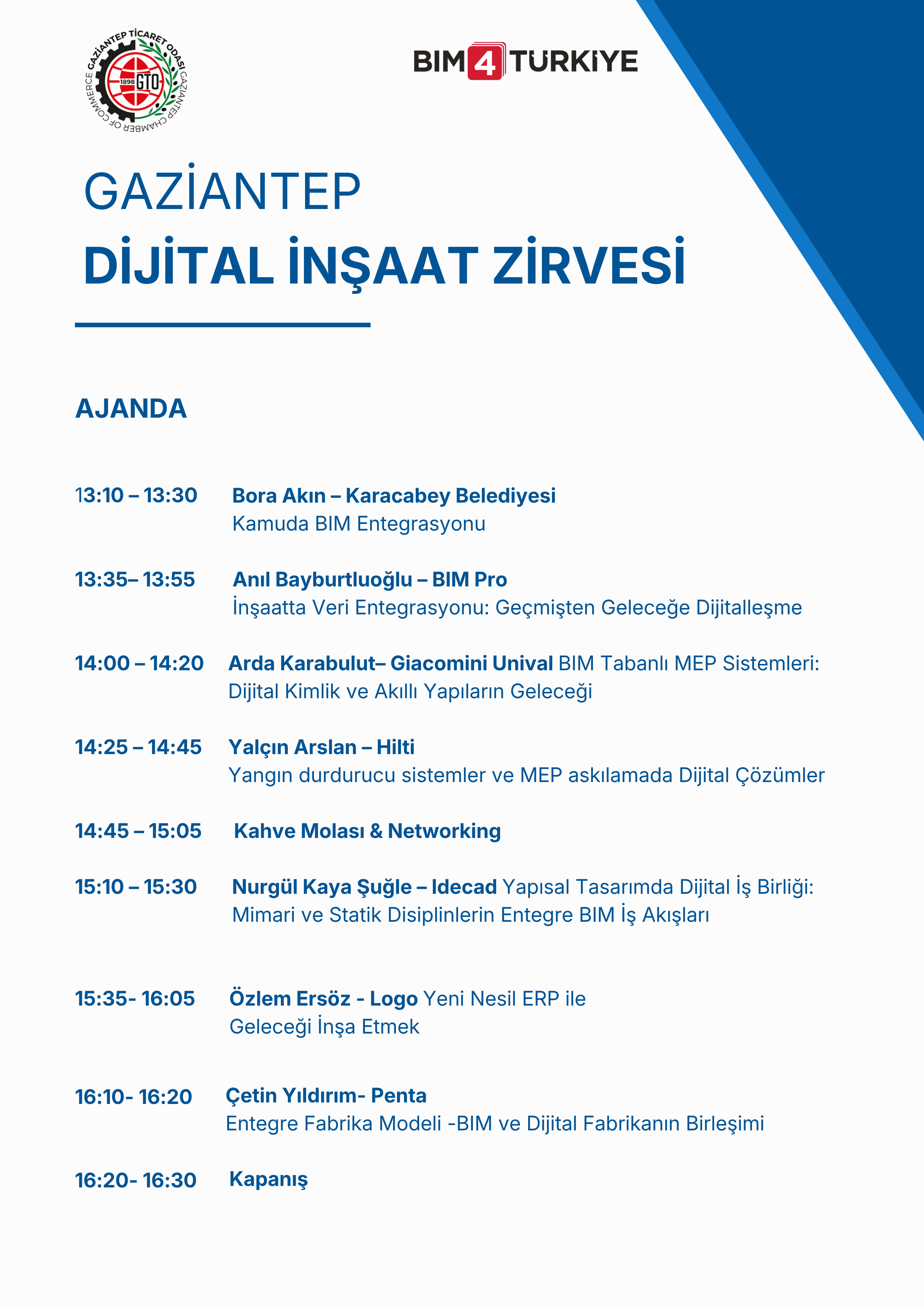 Gaziantep Dijital İnşaat ZirvesiEtkinlik Saati: 09:00 – 16:30